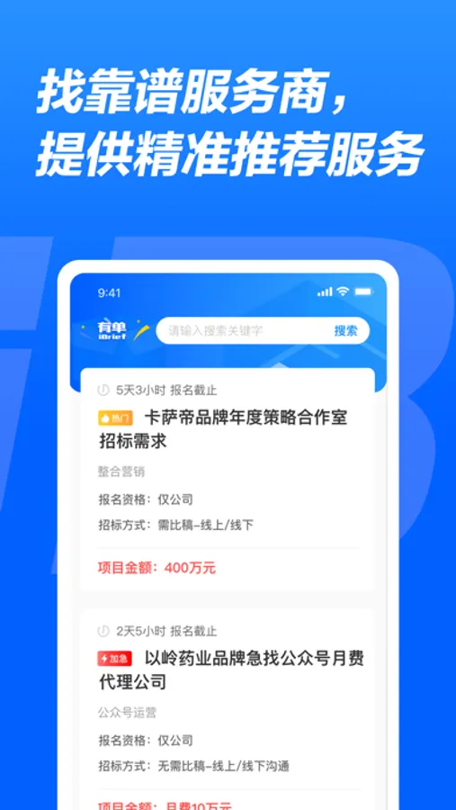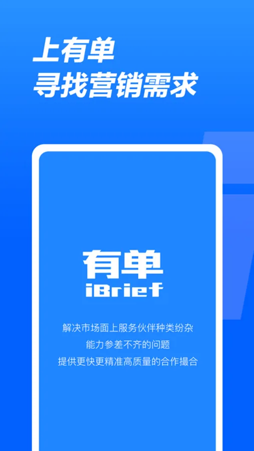 有单是支持广告主寻找资源/业务合作伙伴的「客户合作需求撮合平台」,我们致力于解决市场面上服务伙伴种类纷杂、能力参差不齐的问题,提供更快更精准的提供高质量的合作撮合。