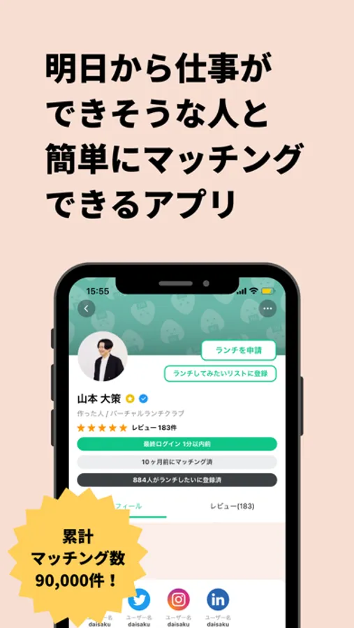 15分のビデオ通話で、仕事の情報収集から副業、ビジネスのマッチングまでできます。