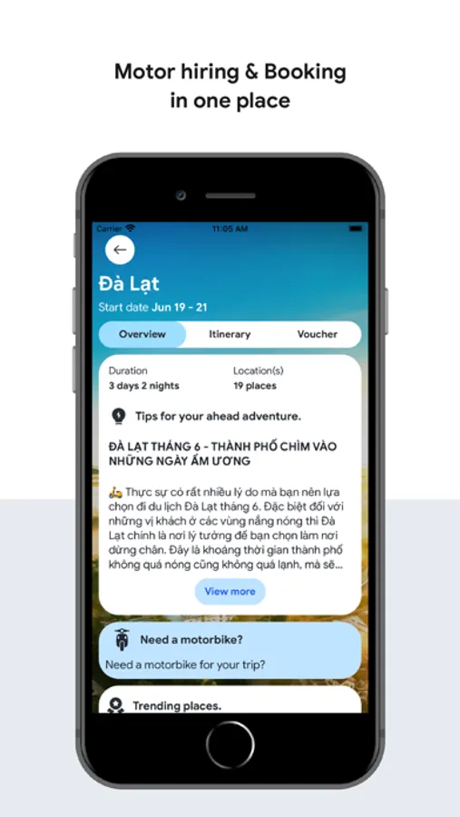- Supporting destination: Currently, our application only supports DA LAT, Lam Dong, and Vietnam, but we plan to cover more places shortly.