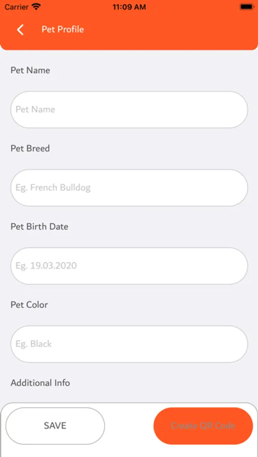 When you create an account for your pet, you can order with cash at the door a QR code which includes your and your pet's information.