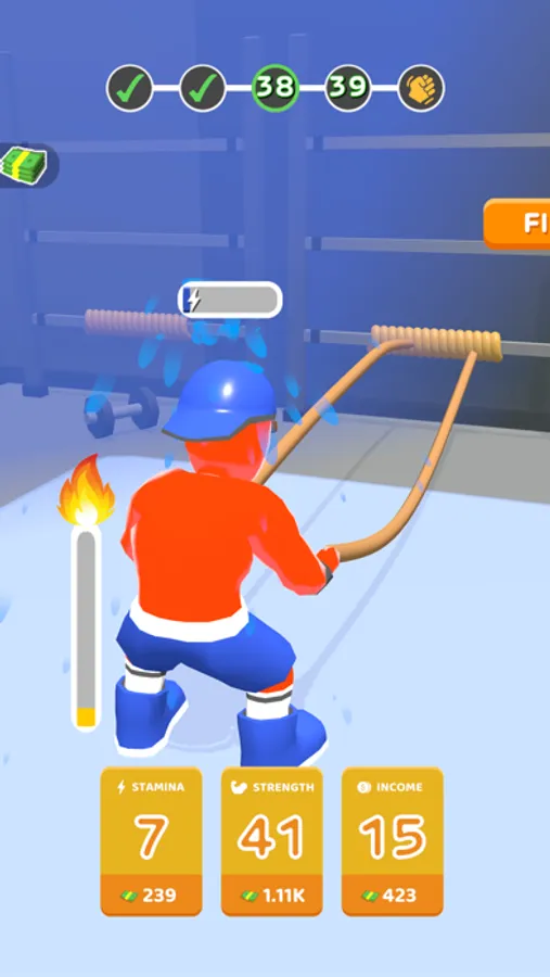 In this game, the strings are literally in your hands! Come on, work out to knock’em down!