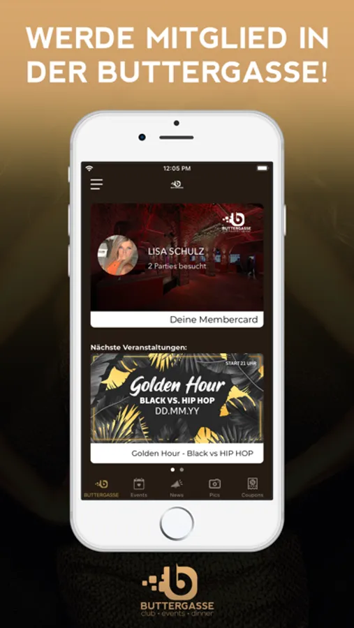 Lade dir unsere Buttergasse App und werde Mitglied in der Buttergasse.