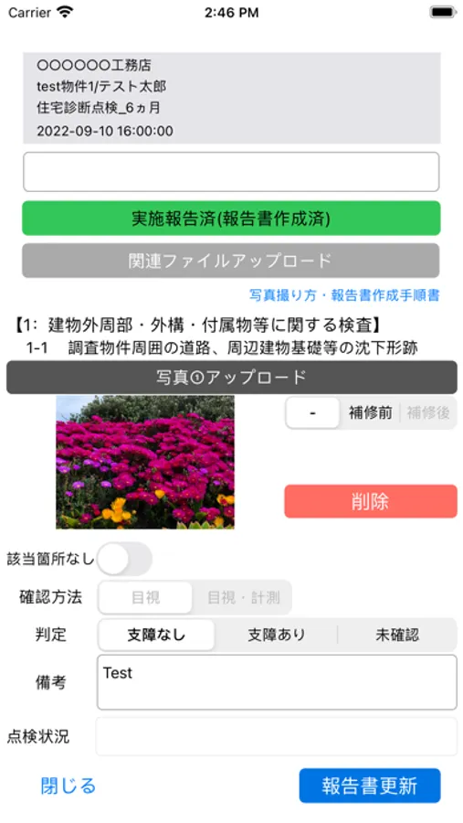 写真の登録や実施報告・報告書の作成を行う事が可能