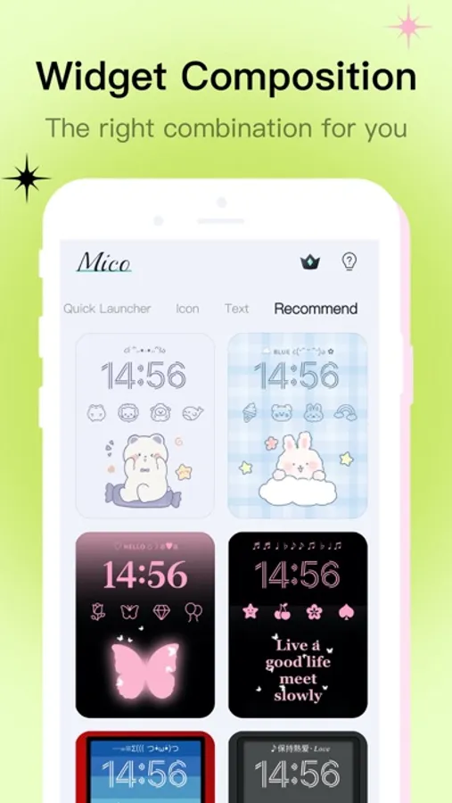 Each widget provides a personalized editing function. You can upload your favorite pictures/GIFs to customize the widget. Come and DIY a theme exclusive to you!