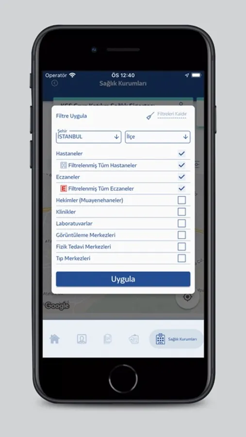 Anlaşmalı kurumları harita üzerinde görüntüleyebilir,
