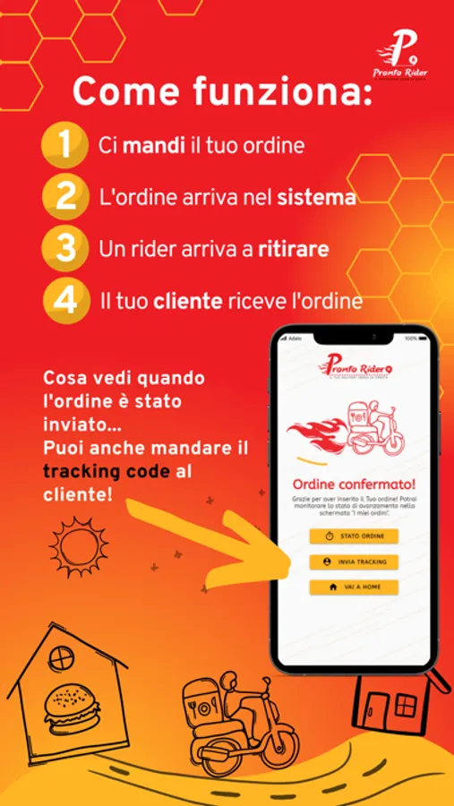… ci sarà sempre un Pronto Rider disponibile per trasportare i tuoi ordini, e far felici i tuoi clienti! Colazione, pranzo e cena!