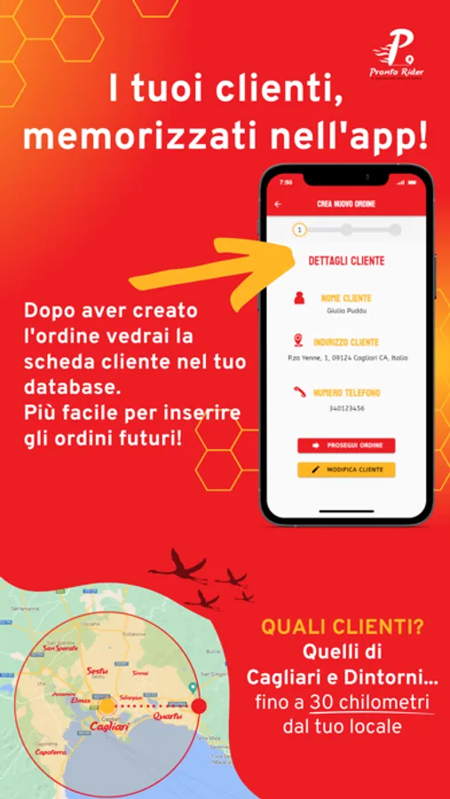 Tu ci mandi i tuoi ordini, comodamente tramite App, e al resto pensiamo noi, grazie alla nostra flotta di rider a Cagliari e al nostro sistema di gestione ordini!