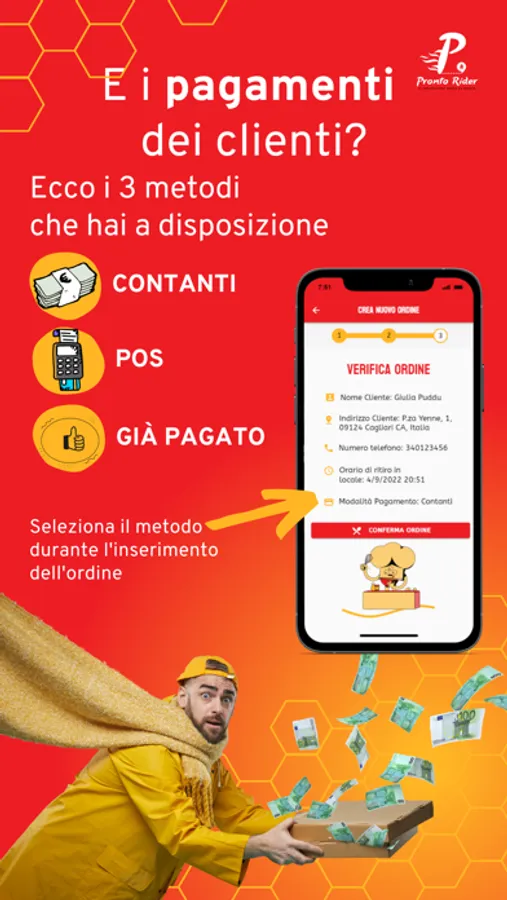 I Pronto Rider si occupano anche di incassare il pagamento dell’ordine: