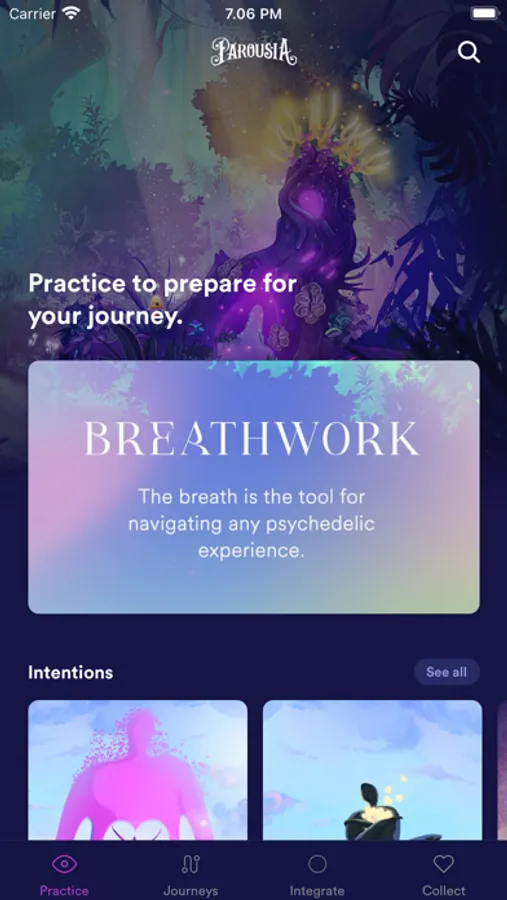 Parousia is the exploration of a mystical world through immersive audio that helps you prepare, journey, and integrate your psychedelic journey.