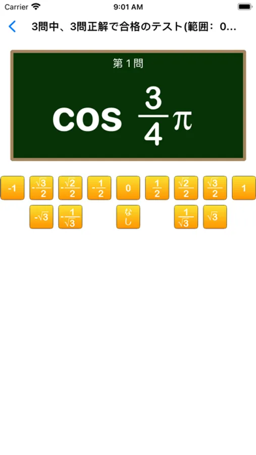 3. 黒板の問題の三角比の値を選択肢から選んで押します
