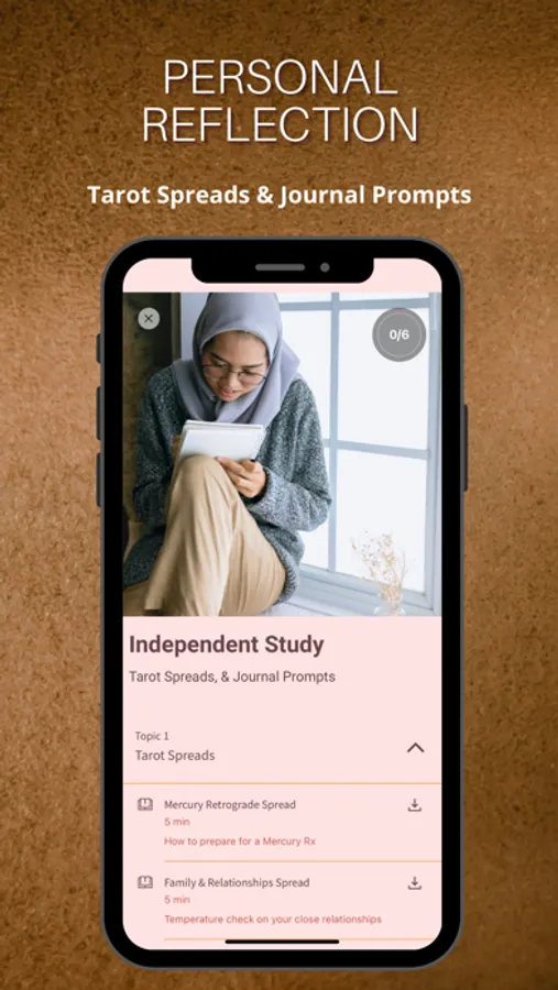 You'll have immediate access to live message boards, the meditation library, recommended tools, and original tarot spreads & journal prompts for self-reflection.