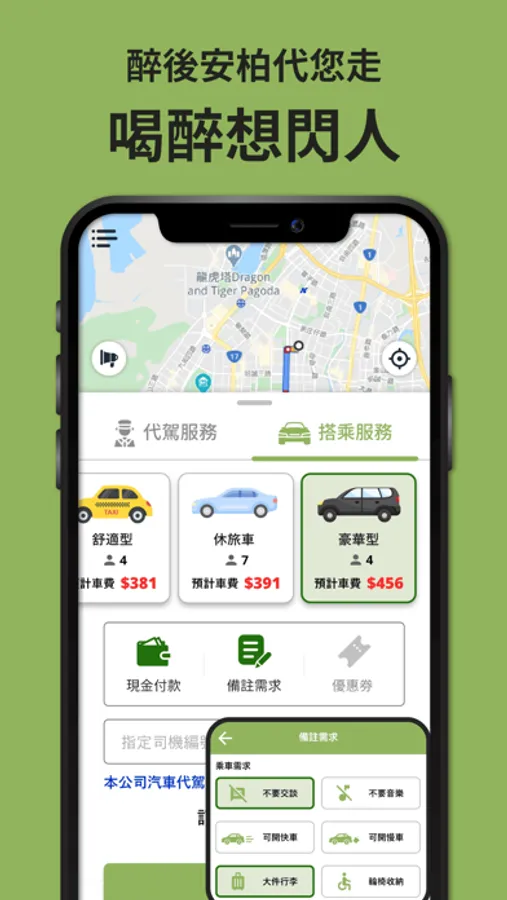 全台唯一代駕時配備 方向盤套/坐椅套!以及可直接透過App進行通話,保護您的隱私,也貼心的提供可選擇自在的乘車模式。