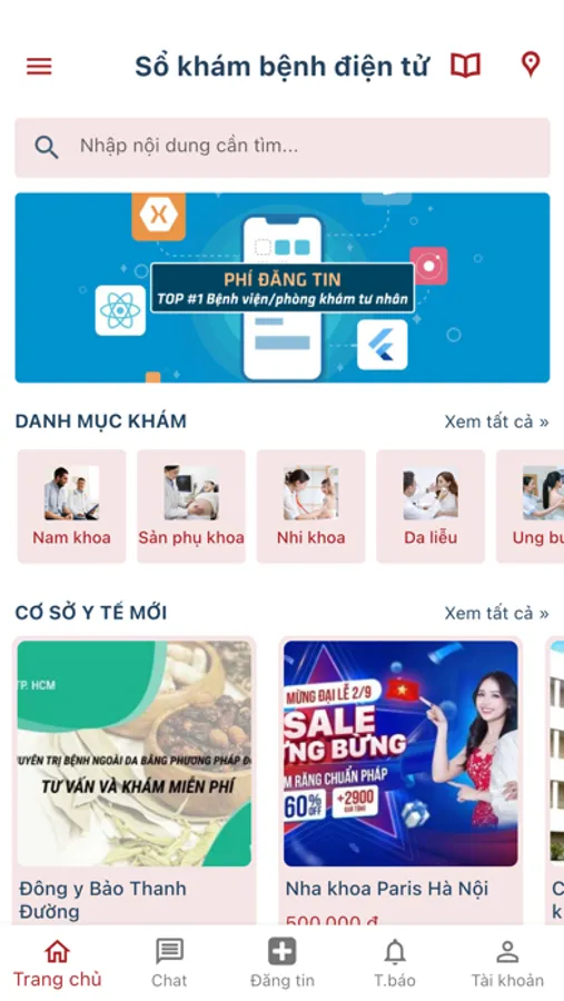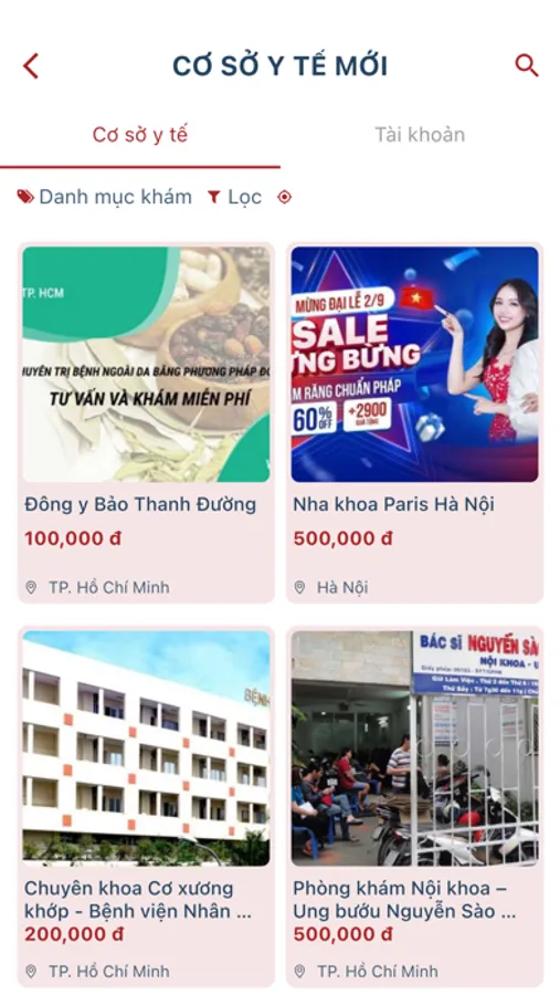 * Tìm kiếm/đặt lịch khám bệnh tại các cơ sở y tế (bệnh viện/phòng khám/thẩm mỹ viện) tư nhân uy tín, giá rẻ, tận tâm và nhiệt tình.