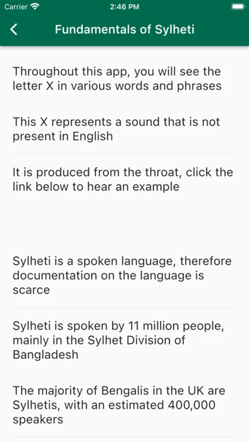 This app covers the Sylheti language, from grammar and verbs to common and useful phrases
