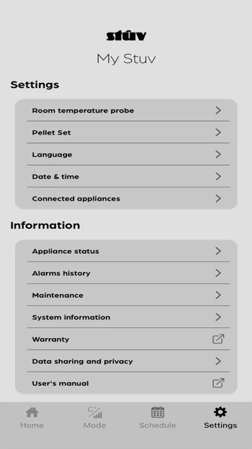 Application to control Stûv pellet stoves via a smartphone or a tablet.