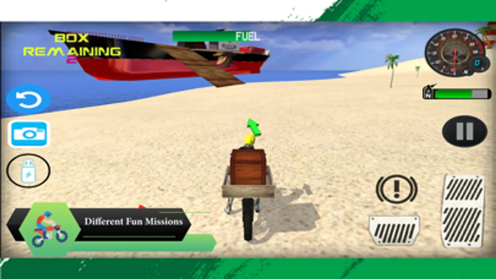 Complete missions by transporting cargo with your motorcycle, don't forget! Be fast and finish the missions on time.