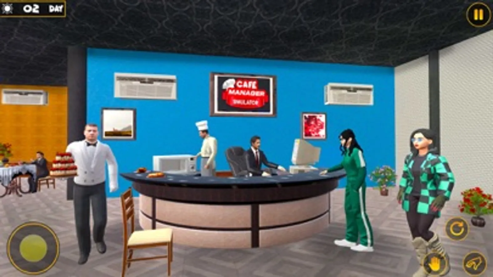 Welcome to the Cafe manager cooking simulator 3D. The cafe theme restaurant simulation, where you can start a cafe business and be a virtual manager in it. Play cafe business simulator and grow your hotel business by handling customers with time management skills. Monitor and manage all the activities in the restaurant from taking orders to serving delicious food to customers. Be the best food manager by serving good quality food in your hotel with time management challenges.