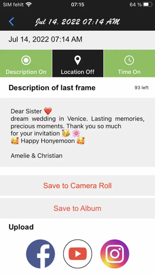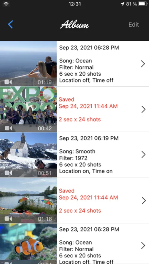Road Movie Premium Version for easy, quick and amazing 24, 36, 48, 60, 90 or 120 second movies. Create your movies with 24 different filters and select the music track from 32 groovy songs. Time of movie start and end date will be displayed on request. In addition, geolocation of your movie is automatically displayed on request. Be best prepared for social media movie posts with Road Movie Premium Version.