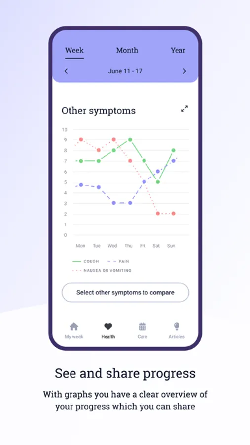 My Cancer Companion encourages you to keep track of how you are feeling, allows you to monitor your progress, view informative charts and share your symptoms with healthcare professionals to improve communication on your health.