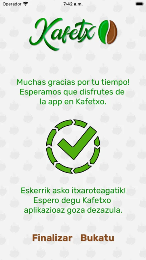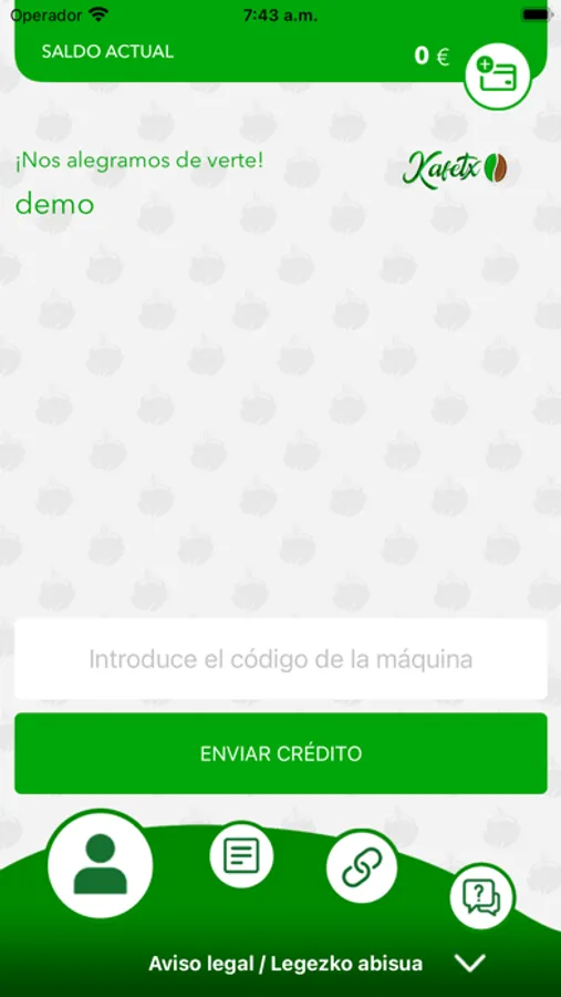 Mediante esta aplicación podrás comprar de manera rápida y segura en cualquier máquina de KAFETXO y comunicarte en caso de incidencias. Tan solo tienes que instalarla y podrásgestionar directamente tu saldo para la recarga,mediante pago en la máquina o con la tarjetade crédito, como prefieras. Para abonar tu compra puedes pasar tus soportes por el lectorcontactless o enviar crédito vía internet a la máquina. Con la app KafetxoPay tendrás unregistro de todos los movimientos.