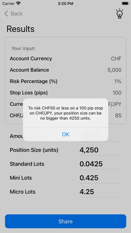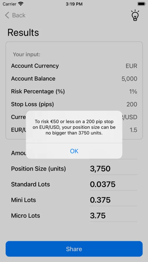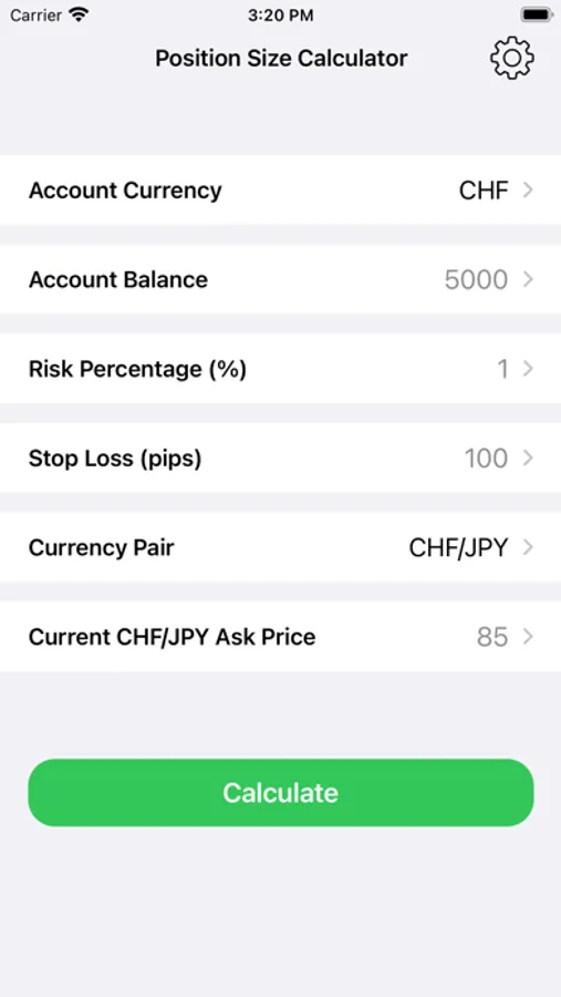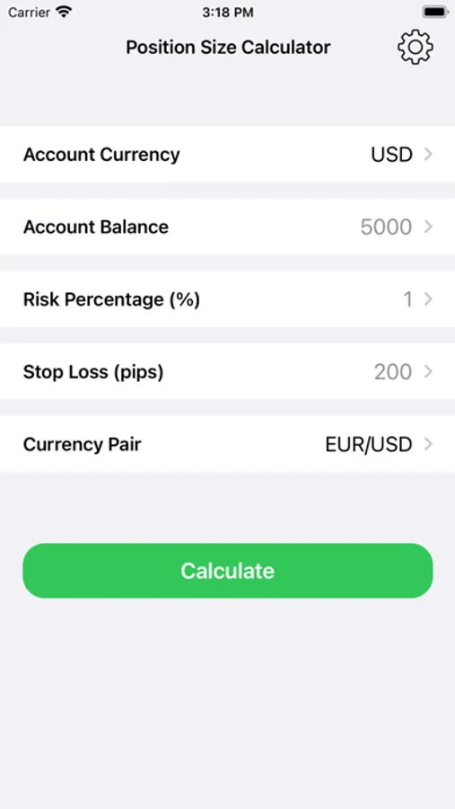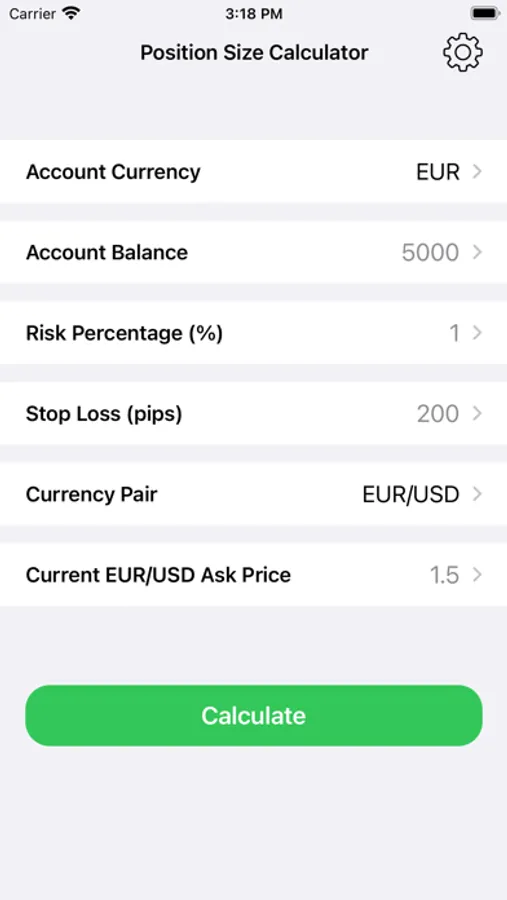 The Position Size Calculator will calculate the required position size based on your currency pair, risk level (either in terms of percentage or money) and the stop loss in pips.