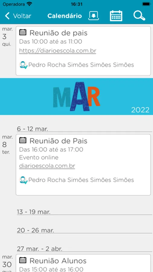 - Encontre e seja lembrado dos eventos no calendário