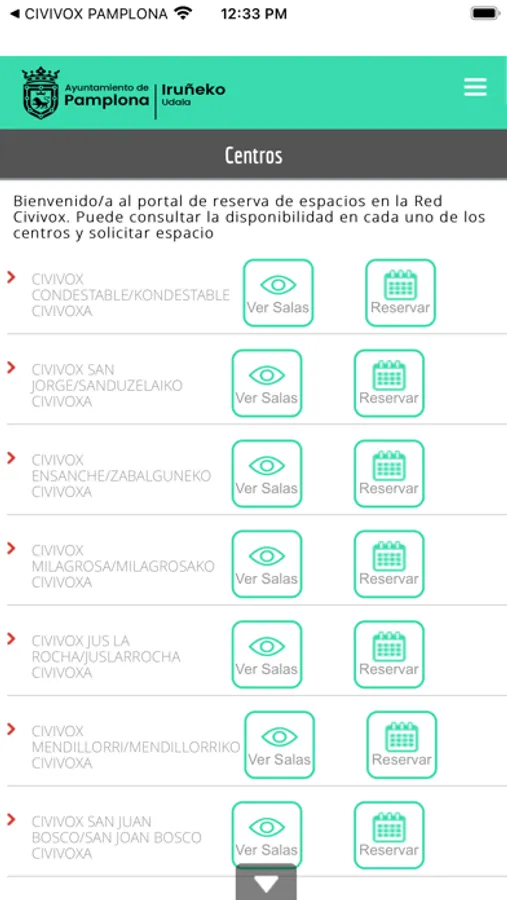 App gratuita que permite solicitar a entidades la reserva y utilización de espacios de la red Civivox del Ayuntamiento de Pamplona con carácter puntual o permanente. Antes de usar los espacios, las entidades deben comprobar que han obtenido la autorización del Centro.