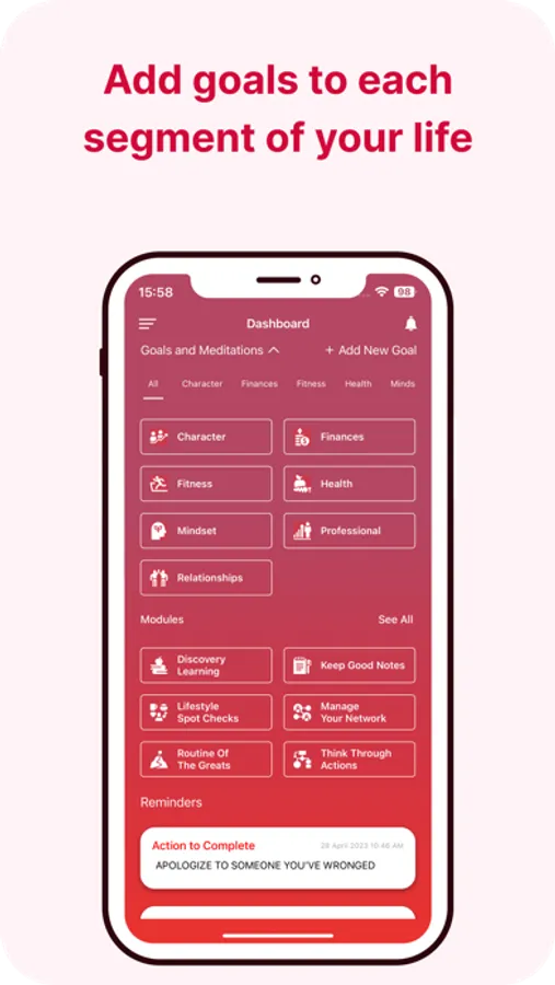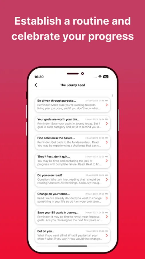 Add financial, health, and personal goals to the Journy app. Structure the goal by adding three goals; the app will keep reminding you to fulfil your goals.