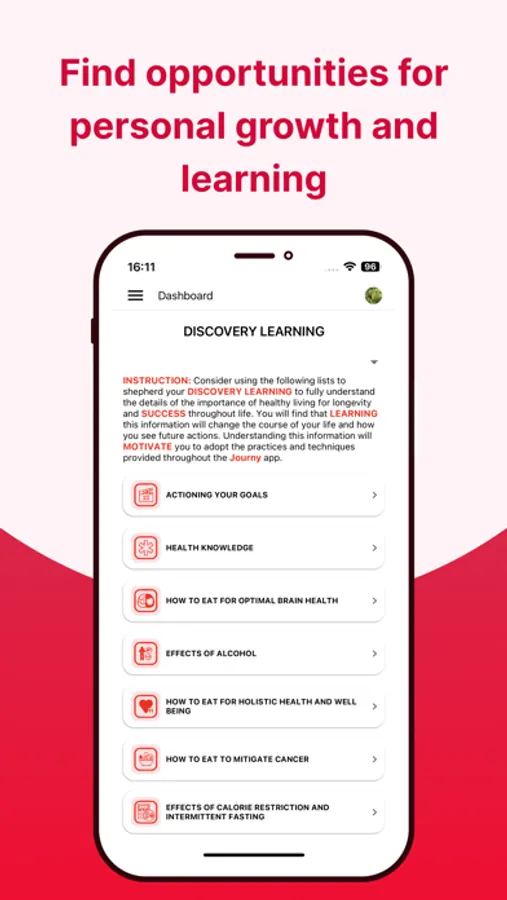 Get different modules on your Journy app, including discovery learning, keeping good notes, lifestyle spot checks, managing your network, the routine of the greats, and thinking through actions.