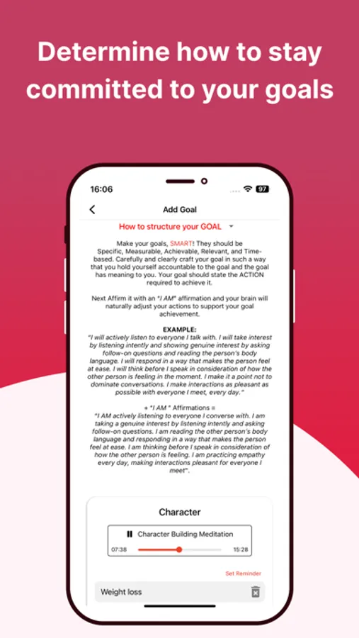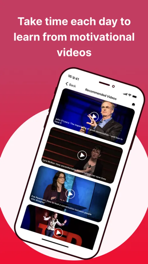 Watch in-app recommended videos related to your goals and dreams from our app suggestion column. These videos help you drive towards your self-growth.