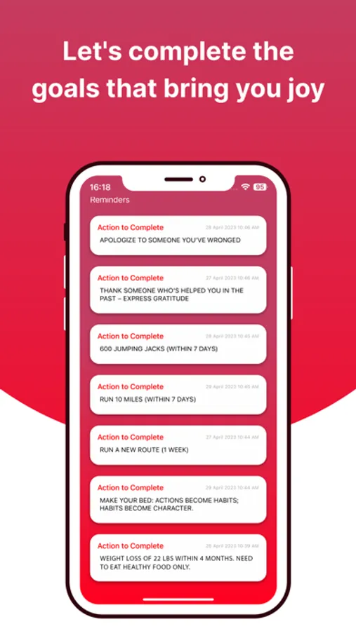 Whatever goals you have fed in the app, you will get a reminder on the dashboard. Mark the goal as complete to stop getting reminders for the particular action.