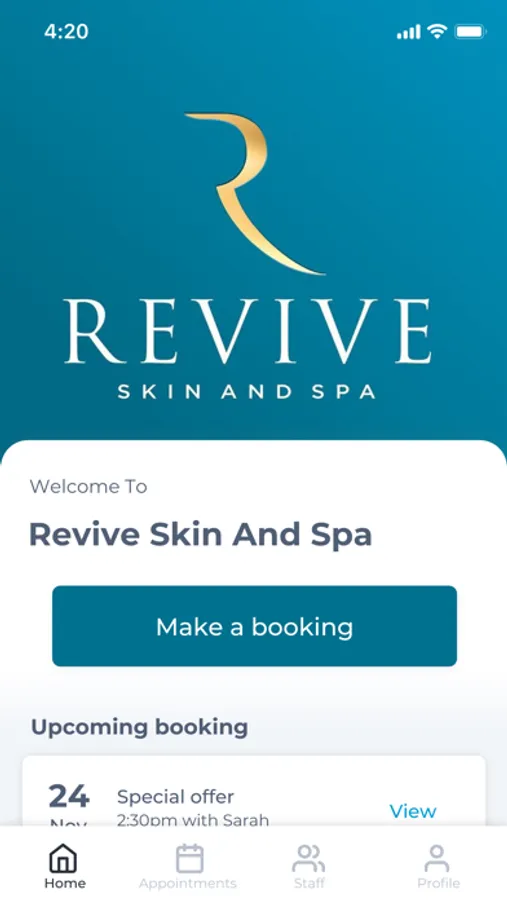 The Revive Skin And Spa app makes booking your appointments and managing your loyalty points even easier. You're just a few taps away from feeling good and looking great!