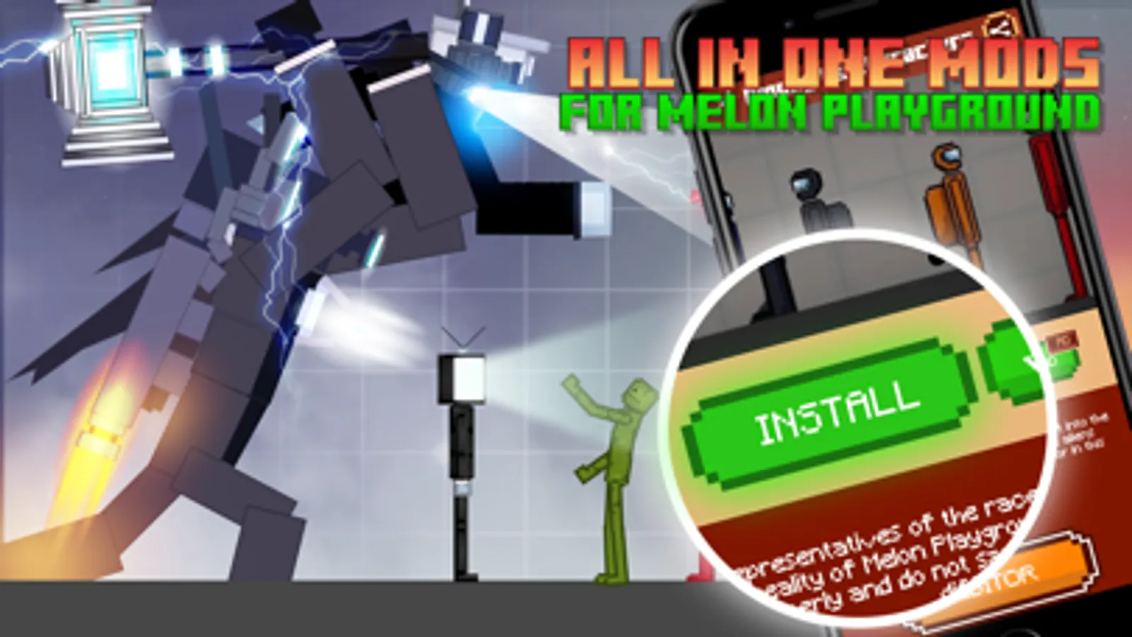 DISCLAIMER: This is an unofficial app. The application helps to install and familiarise yourself with the mod for the game Melon Playground, this is not a game, but an add-on with instructions! If you feel there are trademark violations which don’t fall under the “fair use” rules, please contact us by email.