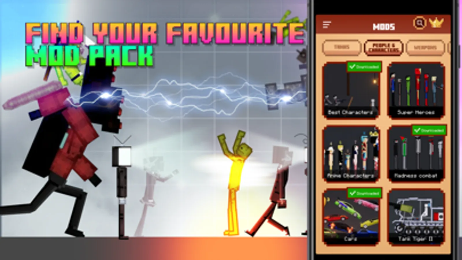 Big room with unlimited freedom of action, experimental physics and an impressive collection of tools, characters and scenery. You can do whatever you want with our wide variety of mods. With our Mods for Melon Playground you can use your creativity to the maximum possibility. Game area give players many choices to create different character incidents between items. No matter where are you on the room you will be a part of a big experiment with car crashes, tanks and weapons, dinosaur appearing, big buildings with tons of furniture. We have collected the most interesting mods on various topics such as: weapons, animal mods, cars mod, furniture, tanks and technics, different buildings and many other. You have possibility to own many unique weapons to take down random obstacles. If you are looking for Melon Playground Mods that challenging and fun you definitely try our app !
