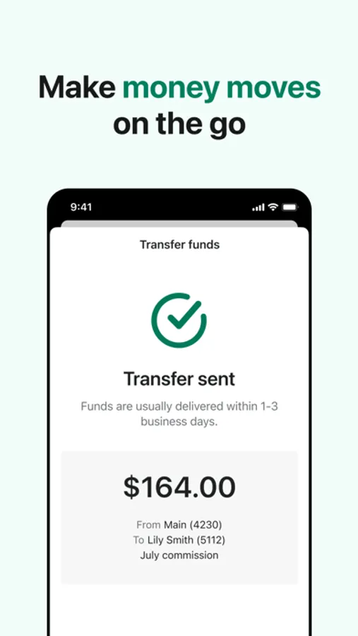 • Transfer funds in or out to pay bills, send money, or make payments directly to vendors—with zero transfer fees.