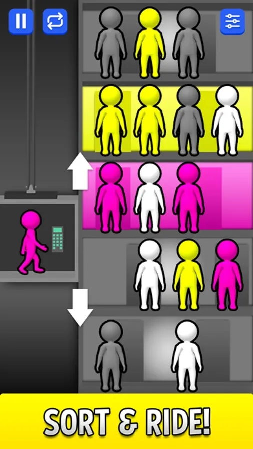 Get ready to move people to their correct floors in this fun and challenging game. This is Elevator sorting, a mind blowing puzzle game! Your goal is to match avatars of the same color by strategically picking them up or leaving them behind as you ride the elevator and leave them on the correct floor. You will need to think ahead to solve each level.