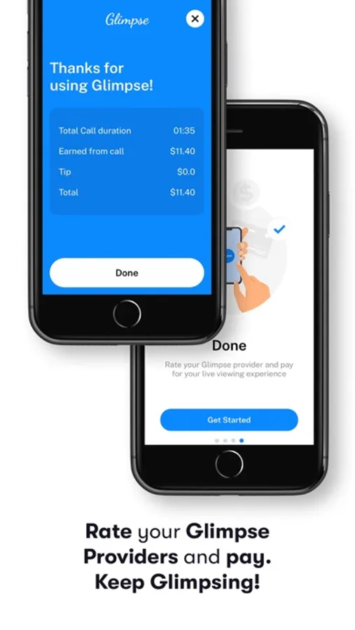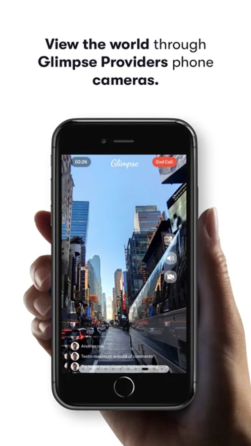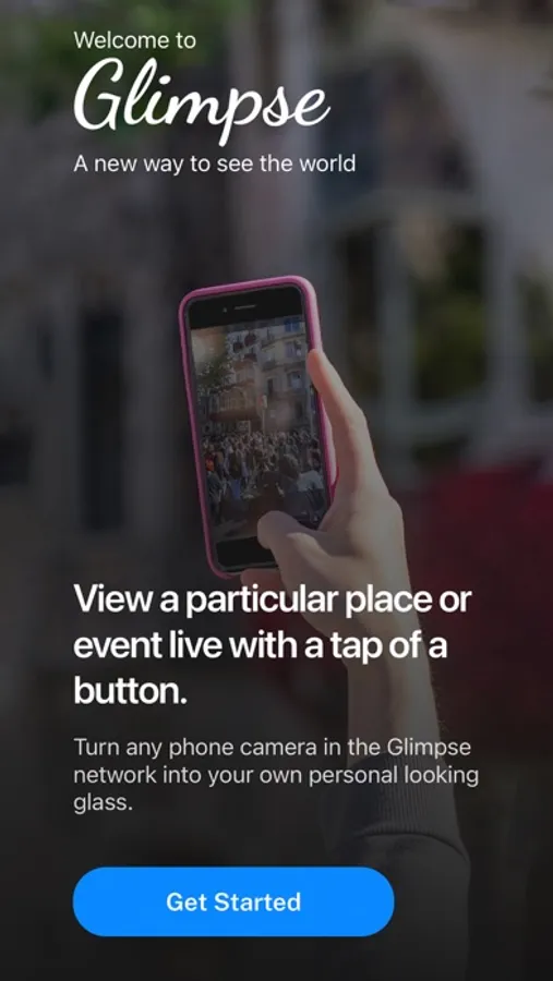 Get a Glimpse of the world through someone else's eyes! Glimpse allows you to connect with real people around the world and see live events and destinations as if you were there. Simply search for what you want to see and connect with a Glimpse Provider who is already there, and they will stream the video live to you on demand. Whether it's a concert, a festival, a tourist destination, or even just a sunset at the beach, Glimpse brings you closer to the action in real time. Glimpse - A new way to see the world!