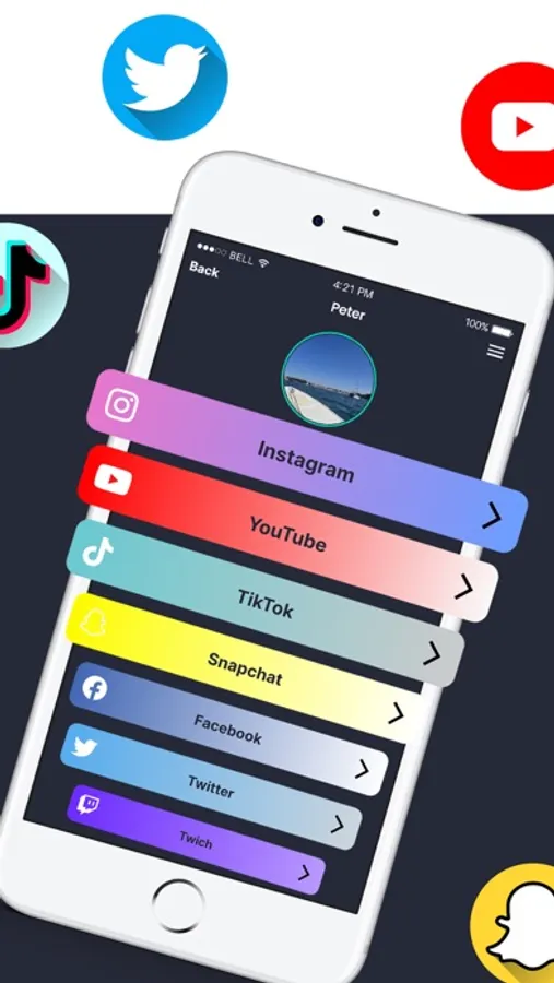 Create your profile and link all your favorite social media accounts like: Facebook, Instagram, Snapchat, TikTok, Twitter, YouTube, Twitch and Reddit.