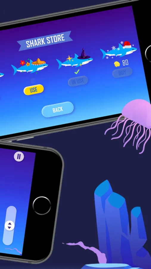 Take control of a shark as you roam around the deep sea collecting shells. Mind the obstacles on your way: jellyfish and rocks. Do your best to avoid them, one touch equals game over!