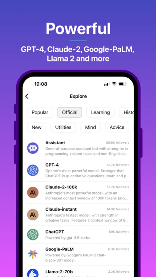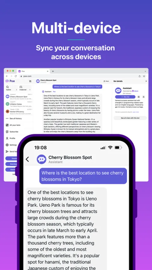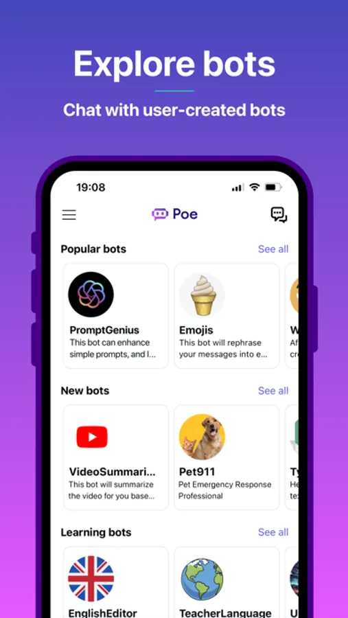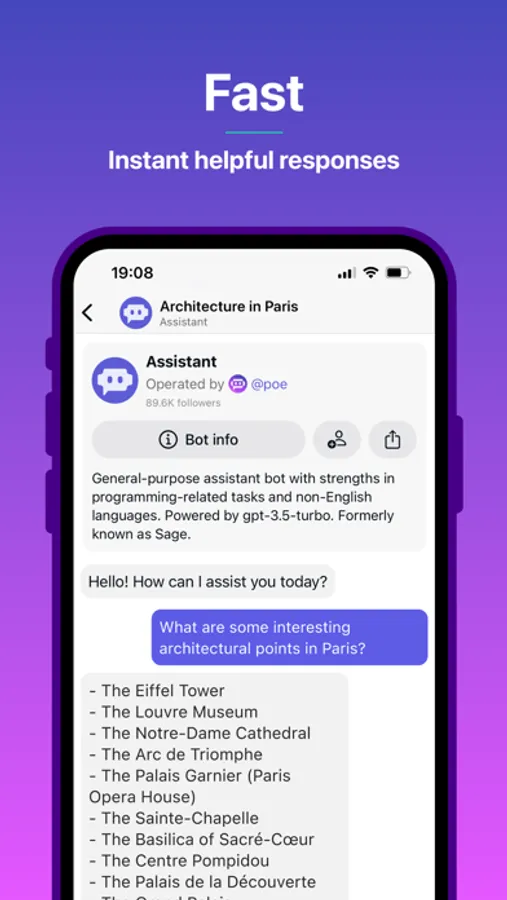 Poe lets you ask questions, get instant answers, and have back-and-forth conversations with AI. Gives access to GPT-4, gpt-3.5-turbo, Claude from Anthropic, and a variety of other bots.