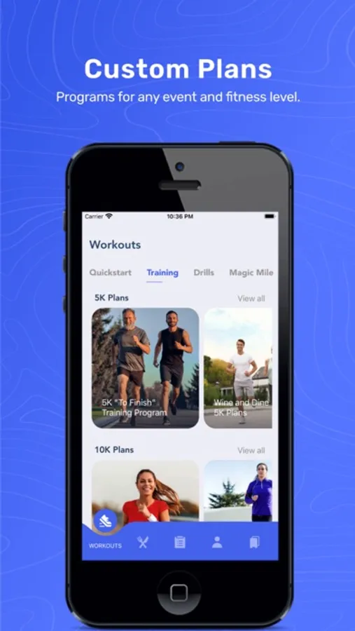 • Complete guidance every step of the way. Programs for 5K, 10K, half marathon, marathon and more!