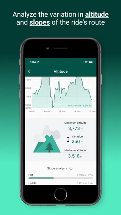 - Altitude analysis: find out the maximum and minimum altitudes of your ride, as well as the distance on each terrain slope (flat / uphill / downhill)