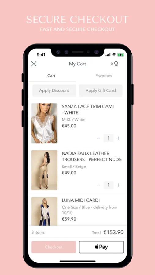 Tap, swipe, shop and secure your new products in an instant with our super easy checkout.