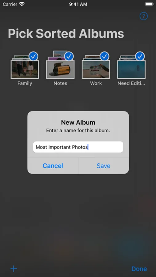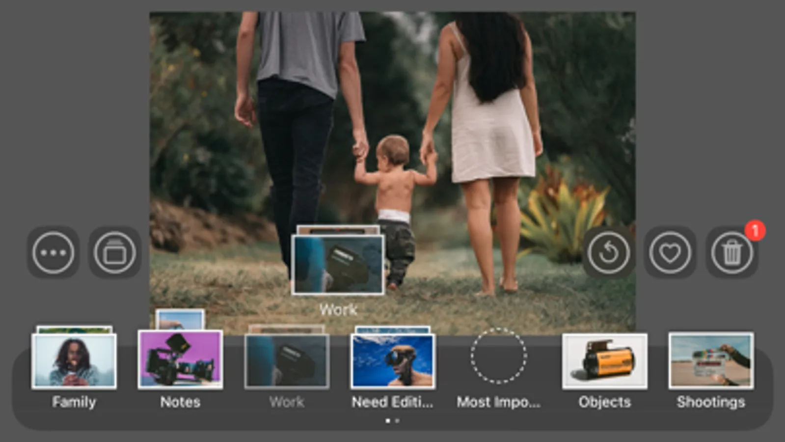 If no album fits the photo, you can postpone the decision for later by scrolling the carousel to the next photo.