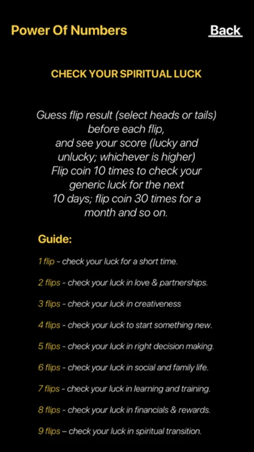 - Check the "Power of Numbers" and find a special number of flips for your unique situation.