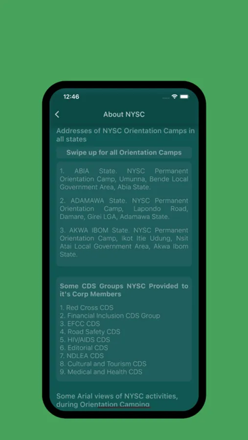 An app curated for NYSC Platoons and their corp members in every 36 Camps across Nigeria, entailing their profiles and autobiographies.
