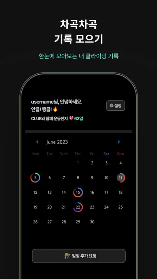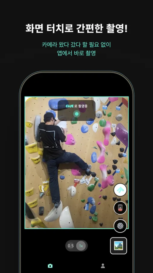 CLUE는 클라이밍 영상을 촬영하고 기록하기 가장 쉽고 편한 앱이에요. 클라이머들을 위한 촬영 기능을 제공해요. 앨범에 가지 않고 완등, 실패 영상을 분류할 수 있어요. 촬영이 끝나면 곧바로 미리보기가 재생되어 피드백을 할 수 있어요. 배터리 세이브 기능으로 화면을 켜놔도 배터리가 많이 소모되지 않아요. 추후에는 클라이밍 기록 기능과 나만의 맞춤 암장 정보등을 제공할 예정이에요.