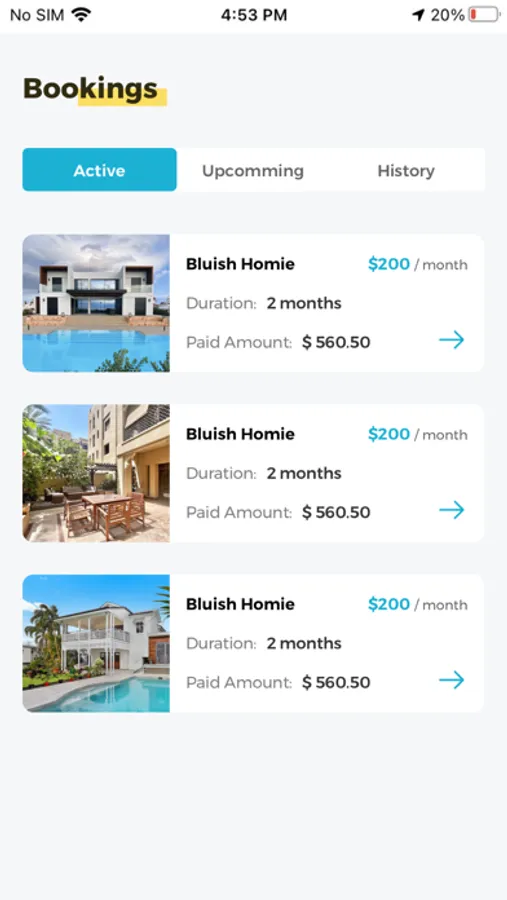 6) They can see all Active Bookings,Upcoming Bookings and History Bookings