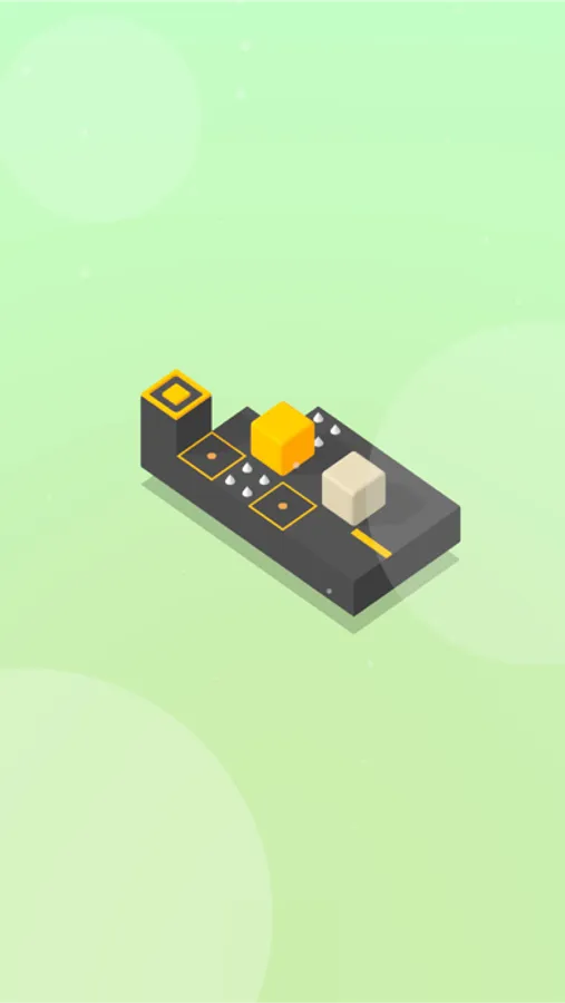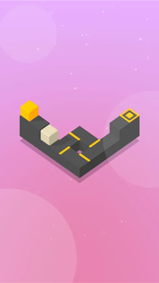 A 3D cube puzzle where you aim for a goal by sticking two cubes together.