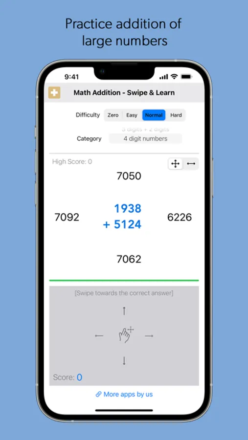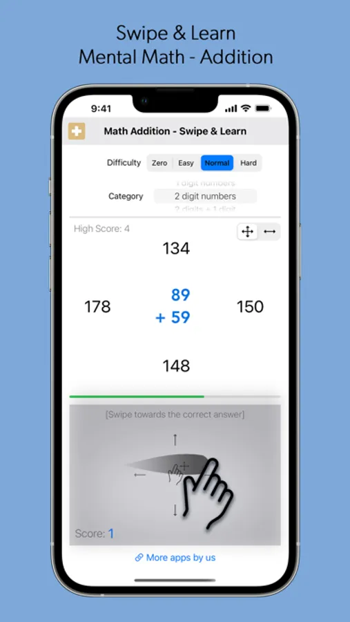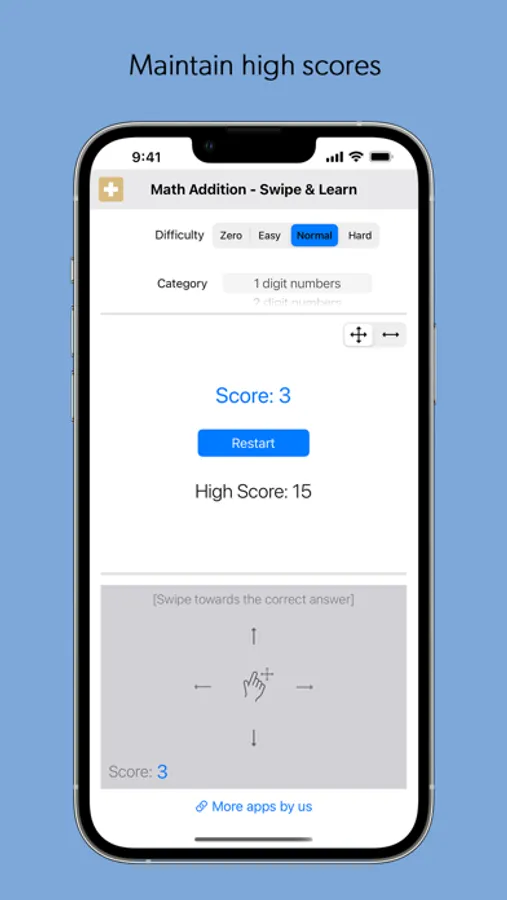 • High scores are maintained for each combination of difficulty level, category and swipe mode